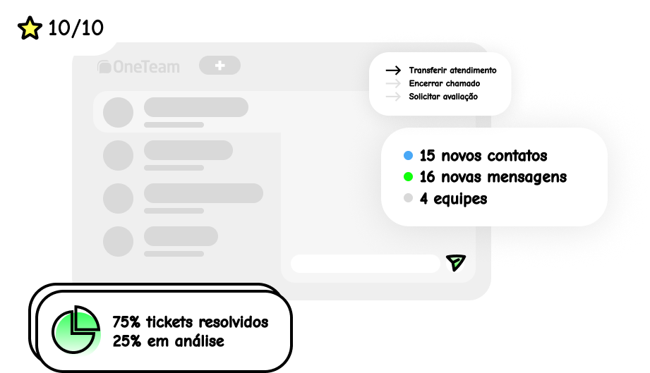 Com o OneTeam, você centraliza todo o atendimento em um único número de WhatsApp, facilitando a gestão e melhorando a experiência do cliente.